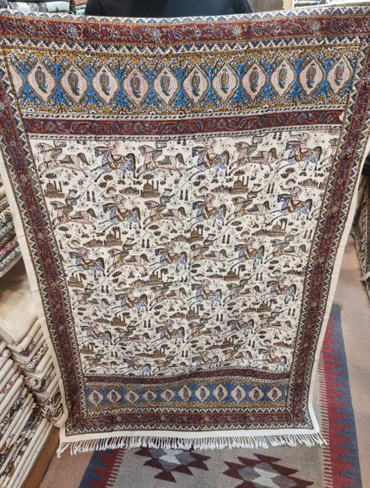100×150 cm Block-Printed Textile (Horse & Paisley Motif)