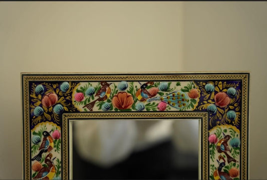 Hand-Painted Mirror with Relief Enamel Frame – Bird & Bloom Design (35×20 cm)