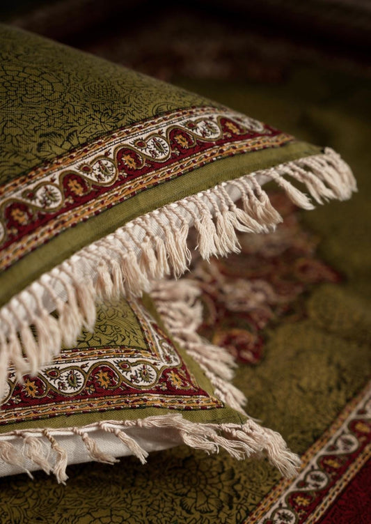 Handmade Block-Printed Cushion Cover β Shamseh Motif | 42Γ42 cm A set of 2)