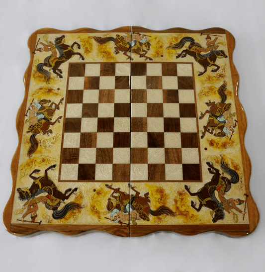 Polo Scene Hand‑Painted Chess & Backgammon Set – Pilardi